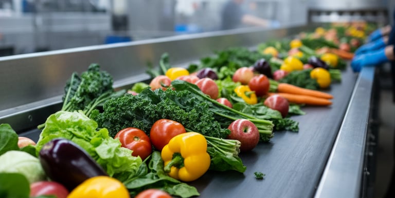 Fruits and vegetables are assessed for freshness, maturity, and handling durability
